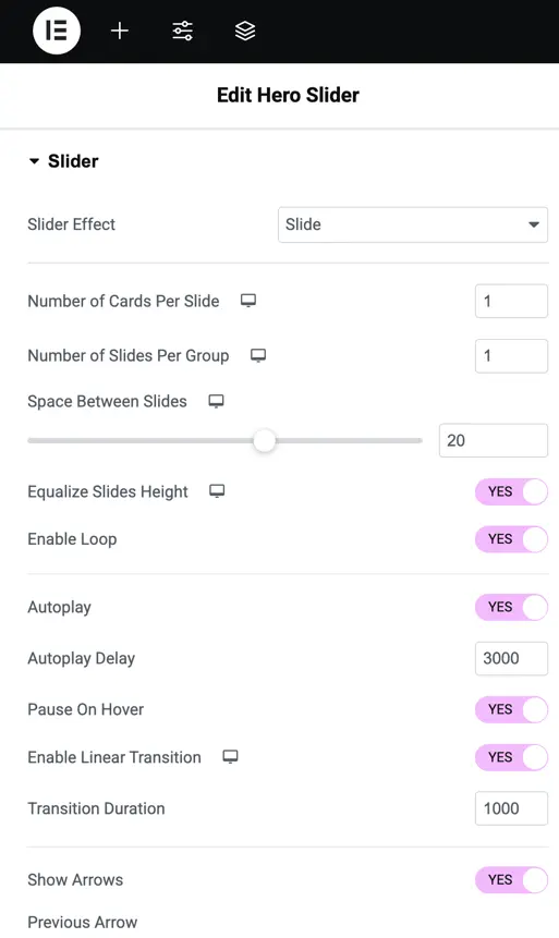 The Hero Slider widget allows you to create engaging hero sections with text, images, videos, and buttons in a sliding format. You can fully customize each slide’s content, layout, and style to fit your design needs.