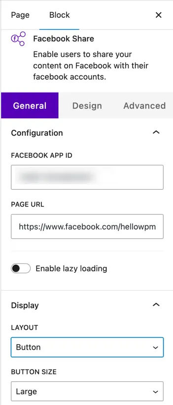 • Facebook App ID – Enter your Facebook App ID to connect the block with your Facebook app.