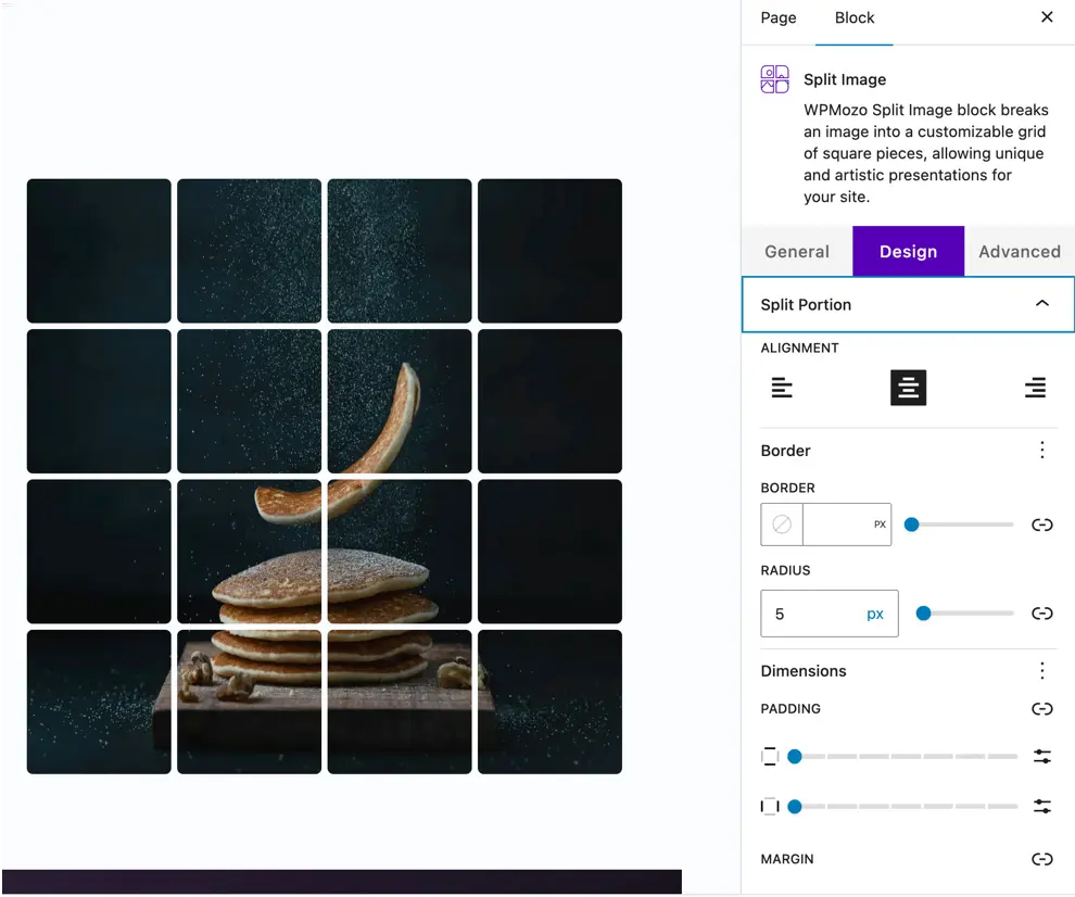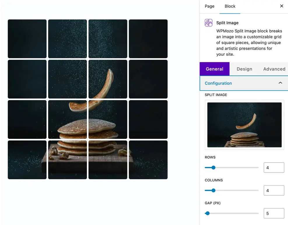 The WPMozo Split Image free Gutenberg Block lets you creatively divide an image into multiple sections using customizable rows and columns. It’s perfect for modern layouts, interactive designs, and grid-style visuals.