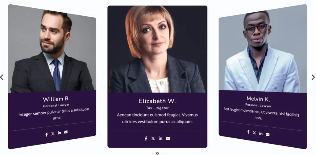 The Team Slider Block helps you showcase team members in an attractive slider layout. With multiple slider effects and display controls, you can easily highlight team profiles, roles, skills, and social links. This is a free block, designed to work smoothly without any technical setup.