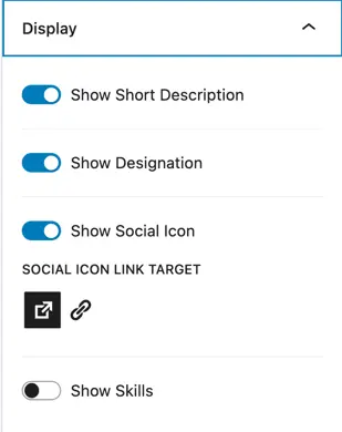 Enable this toggle to display social media icons for team members.