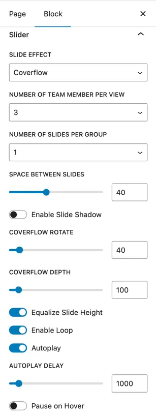 Additional settings will appear based on the slider effect you choose, allowing further customization.